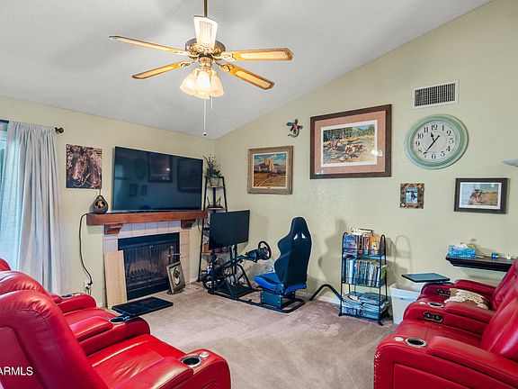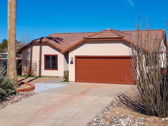 A rare find in Mariposa Heights – Home is adorable & has many upgrades/ features buyers seek. Backyard oasis w' new landscaping tiles, $15,000.00 of citrus & other trees, artificial grass, new concrete sidewalks, lighting, & grill island w' water & ''Egg'' smoker. The new gazebo adds to the ambiance & allows for wonderful mountain views. Trail to wash below from backyard. 30 x 40 ft. carport in side yard for toys. Anderson windows installed Jan. 2023. Interior has a split floor plan. Master bedroom w' special dual closets, private bath w' separate toilet room, dbl. sinks & exit to backyard. The fireplace creates a cozy living room. 2 guest rooms w' large guest bathroom. New roof & facia with metal bird block 2021. Home feels much larger inside. VA Loan assumable for qualifying Veteran.