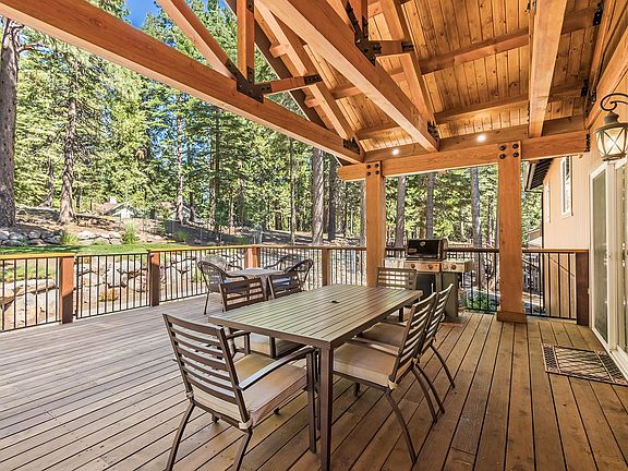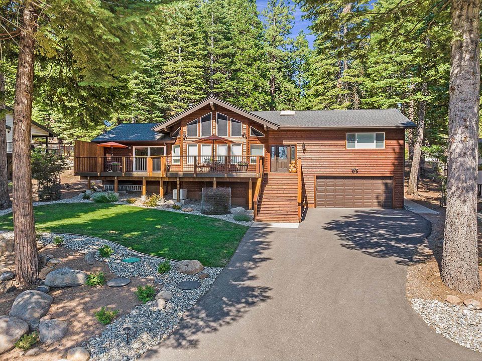 Gorgeous sunsets and beautiful Lake Almanor views abound from this custom 4 Bdrm, 3 Bath, 2100 sq.ft. home inside the gates of Lake Almanor Country Club. Impressive amenities include granite slab countertops in kitchen, bathrooms and laundry room, custom rustic cherrywood cabinetry throughout, GE Profile stainless steel appliances, hand scrapped hickory wood flooring, beautiful exposed beam ceilings, desirable split floor plan with 3 bedrooms and full bath for quests on one side and an exquisite primary with en suite bathroom, radiant heated travertine floors, frameless glass shower enclosure, double sink vanity and walk-in closet on the other. There is a full bath and laundry room at the garage level, very convenient after a fun day on the lake or golf course. Step out to your own private oasis on the grand back covered patio with stunning exposed beam and wood ceilings that will surely be a popular gathering spot! Gorgeous front and backyard landscaping, newly paved driveway, auto Generac generator, extra parking areas, and all furnishings are included making this the ultimate turn-key mountain dream home! Call today for your private showing!