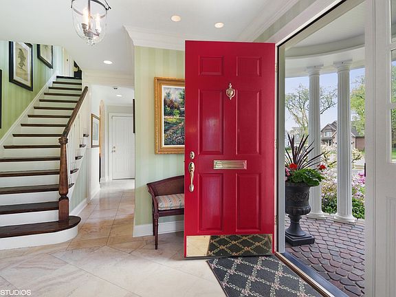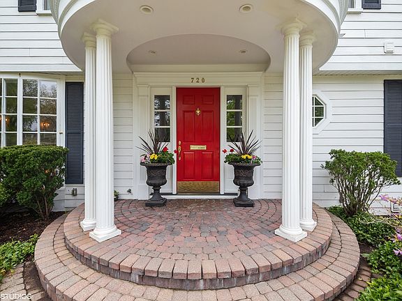 Timeless luxury and breathtaking curb appeal are uniquely embodied in this true neighborhood gem. You won't be able to drive past without slowing down in admiration of the front entry way with a grand portico and stately red door surrounded by magnificent landscaping situated on just over 1/3 acre with a fully fenced private backyard.The everlasting design of this 4-bedroom colonial home has been updated and expanded to meet every modern need. Spacious first floor home office with built in bookcases, 4 floor to ceiling windows, and a french door that opens to the back yard, stunning brick patio, and a voluminous De Giulio gourmet kitchen with all the bells and whistles and hidden functionality for entertaining groups of all sizes. Kitchen, dining, living and family room all connect for premium flow and open-concept living on the main level, with a large bonus area off the family room that can be used as a 2nd office. Marvin glass sliders lead out to the spacious, private patio and rolling green lawn. Four sizeable bedrooms welcome you to the 2nd level each with their own updated bath. Master bedroom has east and west exposure with a french door to the 16X15 wood deck overlooking the backyard. His and hers walk-in closets plus a shoe closet and linen closet come together in a distinctive dressing area with vanity and built in armoire leading to the stunning master bath. The updated master bath is like walking into a spa with a hexagon marble heated floor, quartz counters and polished nickel fixtures which also boasts a steam show, soaking tub and double vanity with a skylight. Three other bedrooms each with their own updated bath, and a coveted custom laundry room with lots of countertops and cabinets finish off the second level. Basement is the perfect rec-room space with recessed lighting, carpeting, a half bath and TONS of storage! Enjoy all the extra luxury amenities with in ground sprinkler system, garage wired for an Electric Vehicle Charger(240V/40A), Kohler generator, and streaming music sound system .