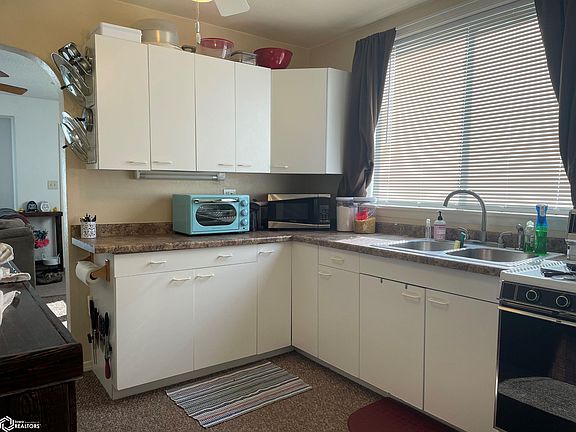 Two bedroom, one bath home located across from the high school. New metal roof in 2022. This home also features spacious living room with possible area for dining, kitchen with dining area, and laundry room. There is also an attic with pull down stairs that houses the furnace and has a finished room with knotty pine flooring and paneling. Off street parking available. Great location close to schools and shopping. Call or an appointment.