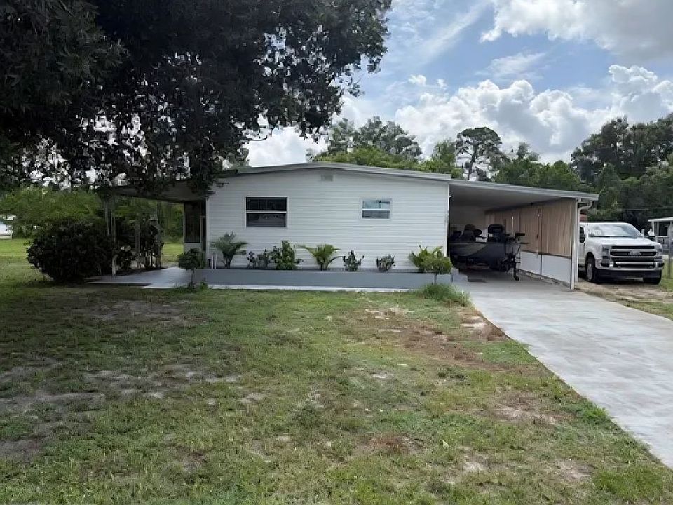 Totally remodeled from floor to ceiling. 3 bedroom 2 full bath. New subflooring, flooring, ceilings, sheetrock, tape & texture. New windows & doors. Vinyl plank flooring throughout. 5 new ceiling fans with lights. Solid oak cabinets in kitchen with granite countertops. Plenty of storage. All new appliances; frenchdoor refrigerator, stove, microwave, & dishwasher, full size upright freezer, washer & dryer. Screened florida room. Carport with a 10x 20 shed, man-cave, or she-shed. Carport for vehicle & boat. Storage shed in backyard. New sheeting, house wrap & vinyl siding. Cement driveway. All in a quiet neighborhood. On private land; .33 acre. Must see to appreciate! Owner financing available.