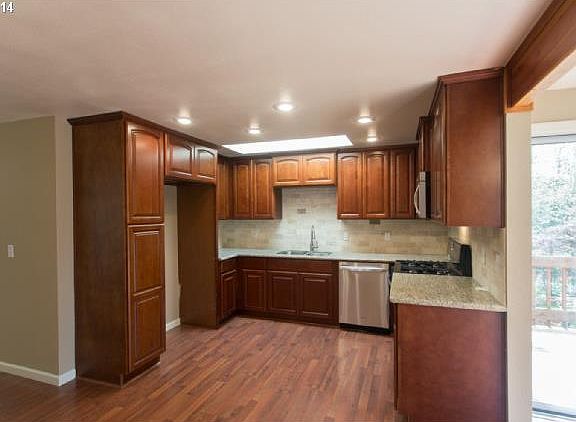 BEAUTIFUL REMODELED ALOHA HOME FEATURES 1550 SQFT (PER SELLER) 3 BDRMS 2 FULL BATHS FRML LIVING W/WOOD BURNING F/P FRML DINING BONUS RM W/WET BAR REMODELED KITCHEN & BATHS W/HRDWD FLRS GRANITE CNTRS SS APPS TILE FLRS W/W CARPET NEW INTERIOR & EXTERIOR PAINT NEW ROOF FULLY LANDSCAPED PRIVATE LOT.