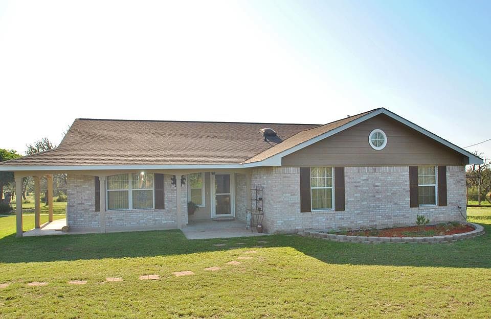 MOVE IN READY home welcomes your family to this well maintained, 4 bedroom & 2 bath, custom built home, built in 2003. The home features a spacious floor plan with a vaulted ceiling & wood burning brick fireplace in living room, country kitchen with breakfast area, formal dining room & master bath with skylight and soaking tub. Flooring of stained concrete, tile & vinyl. Ceiling fans, great storage & ample closet space throughout the home. A brick 2 car detached garage, with opener. Home is nestled on 6.31 ac, in a peaceful, established, rural subdivision. Good access to Fredericksburg & Kerrville.