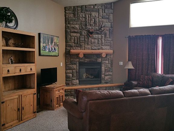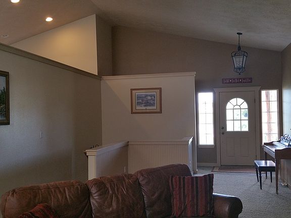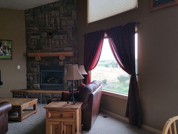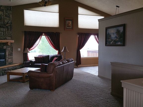 Gorgeous panoramic westerly view!. Quiet cul-de-sac home. Vaulted ceilings with a beautiful fireplace. Spacious kitchen, tiled island, backsplash and floors. Master has walk-in closet, bathroom has dual sinks, and corner soaker tub. Family room features built-in shelving, a pellet stove. Large laundry room, storage areas, pantry, mudroom cabinets, and storeroom. Covered front porch, daylight basement, patio, deck with mature landscaping. Small orchard and garden space.
