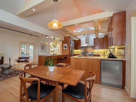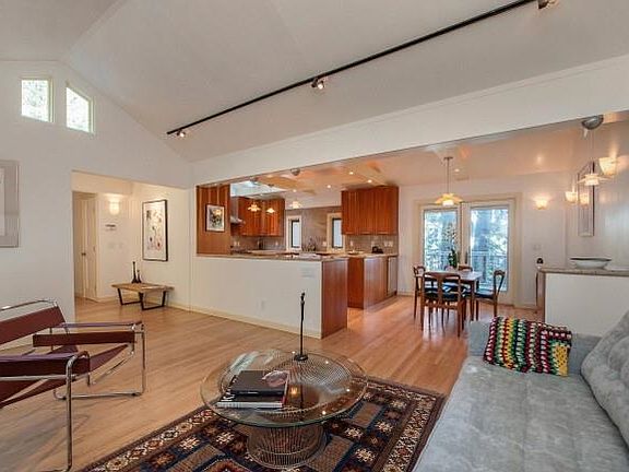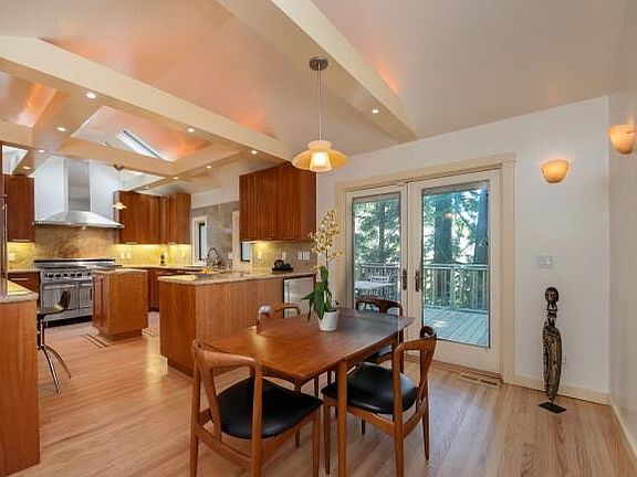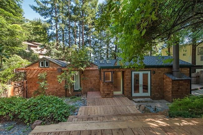 Stylish cedar shingled Contemporary set amongst trees and peek of Bay views. Fabulous cook`s kitchen with double ovens, cherry cabinets, skylights. Wonderful indoor/outdoor living with multiple decks and patios. French doors and vaulted ceilings. Non-conforming living area with full bath and kitchen. separate entry not included Public Records.