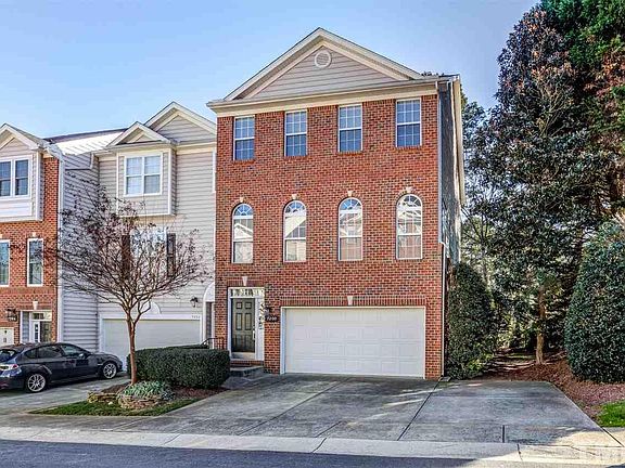 Beautiful end unit, brick front townhome in prime Raleigh location! This former model home features hdwds in foyer, LR, dining & kitchen, new carpet in bonus, newer roof & hvac, updated kitchen w/ stainless steel appliances, granite & tile backsplash, wainscoting, crown molding & more! Vaulted ceilings in all bdrms. Master bdrm w/ his & her closets. Huge bonus room w/ fireplace & patio access. Enjoy the deck w/ community pond views. 2 car garage + extra parking pad.