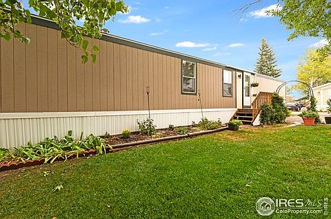Cute as a button home just minutes from Fort Collins in Pine Lake Village! Appreciate the peace and quiet of the country, but convenience of being close to town and I-25 for commuting. You'll love this very well maintained home situated on a landscaped lot w/ mature trees, raised garden bed, fresh exterior paint, 2018 roof w/ transferable warranty, and an 8x8 storage shed. Inside is very clean featuring fresh paint, new laminate wood floors, 3 beds, 2 full baths, 2 window AC units, and window coverings. Buyer must pass park approval and background checks. Owner occupants only and $420/month lot rent which includes trash service. Storage for RV/boats available for additional rent. Contact listing agent with any questions!