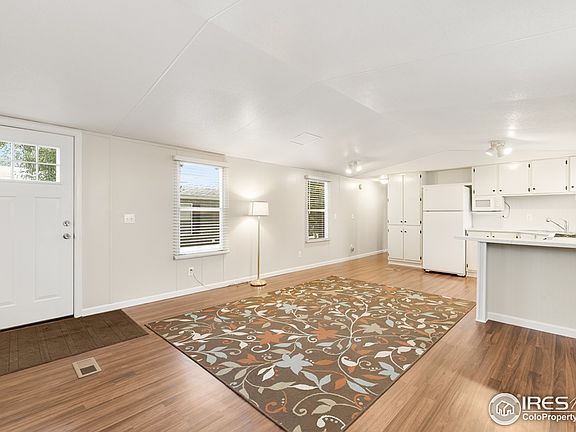 Cute as a button home just minutes from Fort Collins in Pine Lake Village! Appreciate the peace and quiet of the country, but convenience of being close to town and I-25 for commuting. You'll love this very well maintained home situated on a landscaped lot w/ mature trees, raised garden bed, fresh exterior paint, 2018 roof w/ transferable warranty, and an 8x8 storage shed. Inside is very clean featuring fresh paint, new laminate wood floors, 3 beds, 2 full baths, 2 window AC units, and window coverings. Buyer must pass park approval and background checks. Owner occupants only and $420/month lot rent which includes trash service. Storage for RV/boats available for additional rent. Contact listing agent with any questions!