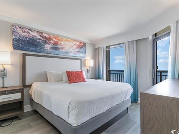Welcome to The Grande Cayman Resort, a pinnacle of luxurious oceanfront living! This exceptional 3-bedroom, 2-bathroom condo, nestled on the 15th floor, promises to sweep you off your feet. Step into the foyer, where a harmonious color palette welcomes you, setting the stage for a remarkable experience. This fully furnished gem features two guest bedrooms on opposite sides of the hallway, sharing a well-appointed guest bathroom with a tub/shower combo. Impeccable design is on display, with a captivating shiplap accent wall in the living area and a seamless open concept for the kitchen, dining, and living spaces. The kitchen, adorned with exquisite granite countertops and pristine white cabinetry, exudes elegance. The addition of luxury vinyl flooring adds a modern touch that elevates the overall atmosphere. The oceanfront master bedroom serves as a tranquil haven, granting access to the oceanfront balcony, where breathtaking vistas await. The master suite also includes a private ensuite with a walk-in tiled shower. Slide open the living room's door to invite in the refreshing ocean breeze and the soothing sounds of the waves. This condo comes fully furnished, ensuring a smooth transition into your coastal oasis. The Grande Cayman Resort offers an array of exceptional amenities, from a lazy river to a vast indoor/outdoor pool, and direct access to the pristine beach. With private parking available in the convenient garage, maintaining an active lifestyle is effortless, with a well-equipped fitness center and miniature golf course at your fingertips. Satisfy your culinary desires at the resort's on-site eateries, including a Starbucks coffee shop. Homeowners' fees cover essential services like electricity, exterior insurance, water/sewage, trash disposal, internet access, and cable service, providing a worry-free living experience. Conveniently located near premier shopping, fine dining, and a wealth of entertainment options, The Grande Cayman Resort ensures you're always just moments away from the best that Myrtle Beach has to offer.