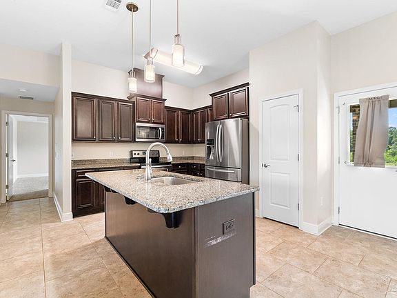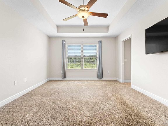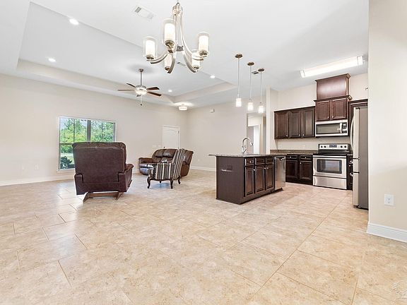 Welcome to your country living oasis! This 2018 build home is like new and features three bedrooms and two full baths on a split floorplan. With over 7.4 acres of land, this property could be used as a homestead, for raising livestock, or any number of other possibilities. Stepping inside, you are greeted with tile floors throughout the main living area along with fresh paint in the living space. Dark colored cabinets are accented by stainless steel appliances with granite counter tops. Recessed lighting in the living room and an open floorplan provide ample space for a dining room while the island provides additional seating options with the breakfast bar. The split floorplan offers privacy for the master suite which includes a large walk-in closet, separate shower and garden tub while the guest bedrooms offer double-door closets. The oversized utility room provides ample space for a large freezer or additional storage. The home is rounded out by a two-car garage, front porch, and covered back patio. Out back, you are greeted with over 7 acres of sprawling and private space. The land offers mature blueberry bushes, peach trees, and various other fruit plants and the well house offers additional storage for yard equipment. This property is sure to please to schedule a tour today!