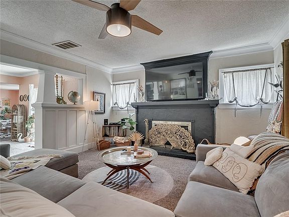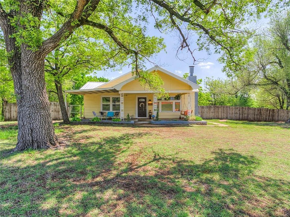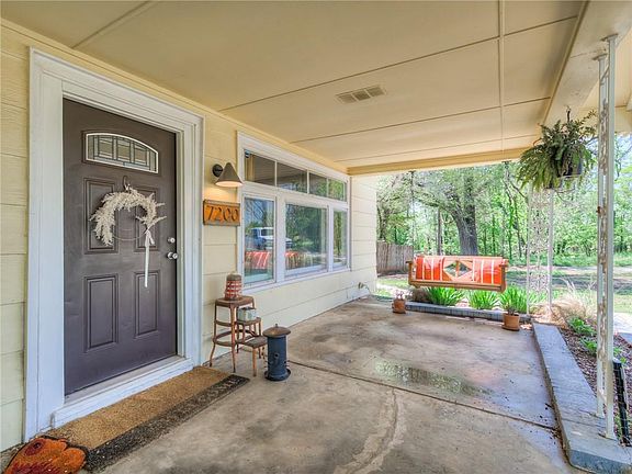 Gorgeous 1950s era home just on the edge of Oklahoma City with a spacious open floor plan, original fireplace and impeccable large windows that flood the home with natural light. The updated kitchen and bathrooms give a modern touch to this vintage beauty. The large primary en-suite has it's own back deck with a stunning view of the property. With brand new light fixtures, windows, HVAC and a new shop built last year, this spot is perfectly updated without removing the mid century charm. With a large covered front porch and an acre all to yourself, you could spend your evenings tucked away in the trees in this little slice of heaven.