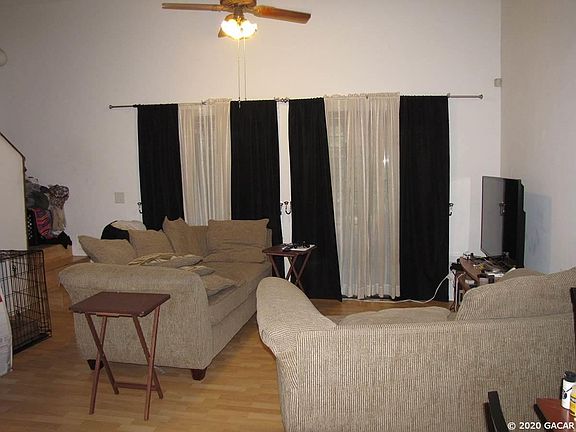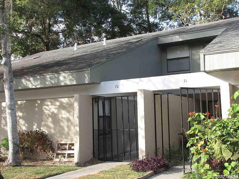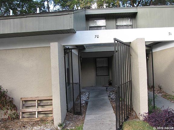 This condo has 2 Bedrooms and 2 baths. The master is upstairs with an attached den/office, and the second bedroom is downstairs. It has a nice screened rear porch that overlooks woods. Unit has had some updates. AC replaced in 2019. Vaulted ceilings with fans. Laundry room. Gated front patio area. Building has been painted recently. Condo fees are $ 155/month and cover building insurance, exterior maintenance including the roof, lawn care, trash, and community pool. Conveniently located and close to many restaurants, North Florida Regional Hospital and the Oaks mall. A short commute to SF College or UF. Located very close to bus line. This unit is currently leased until July 28, 2020.