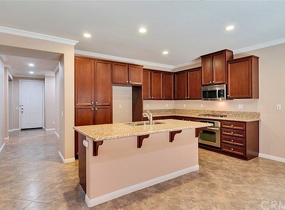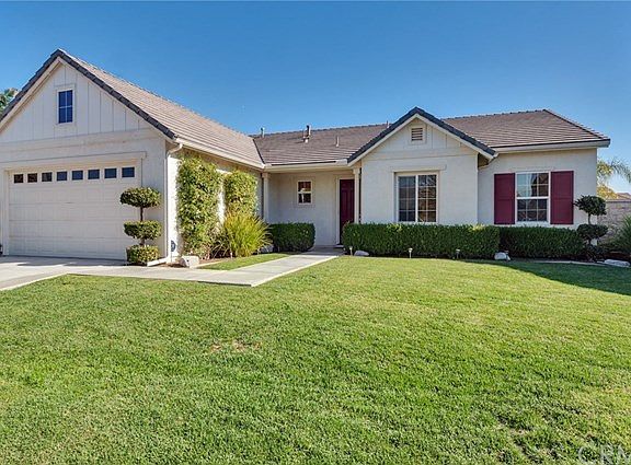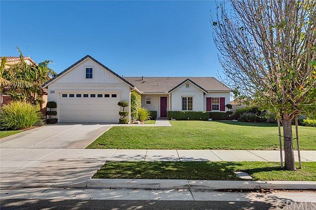 Welcome Home! FANTASTIC single story home located in the beautiful Avonlea community in Eastvale. Tile flooring in the entry, hallways, kitchen and dining area. Light and bright kitchen with granite counter tops, center island with sink, dark wood cabinets, lots of storage and stainless steel appliances. Kitchen opens into the dining area and family room. Dining room has a sliding door to the patio, cozy family room with a fireplace for those cold winter nights. Crown molding, custom upgraded shutters, ceiling fans throughout and dual pane windows. Good size master bedroom, bathroom en-suite, double sink vanity, granite counter tops, large soaking bathtub, separate shower and a walk in closet. Two other bedrooms both with mirrored closet doors. Bathroom in the hallway has a dual sink vanity, shower/tub combo and a guest bathroom located at entry. Beautifully landscaped front and backyard, lots of flowers and trees, upgraded patio cover with a ceiling fan and lights. Indoor laundry room with sink, over sized garage with direct access to the home. Walking distance to Avonlea Park amenities include a children's playground, large basketball court and plenty of walking paths. Close to shopping, schools and commuter friendly. Don't miss out!
