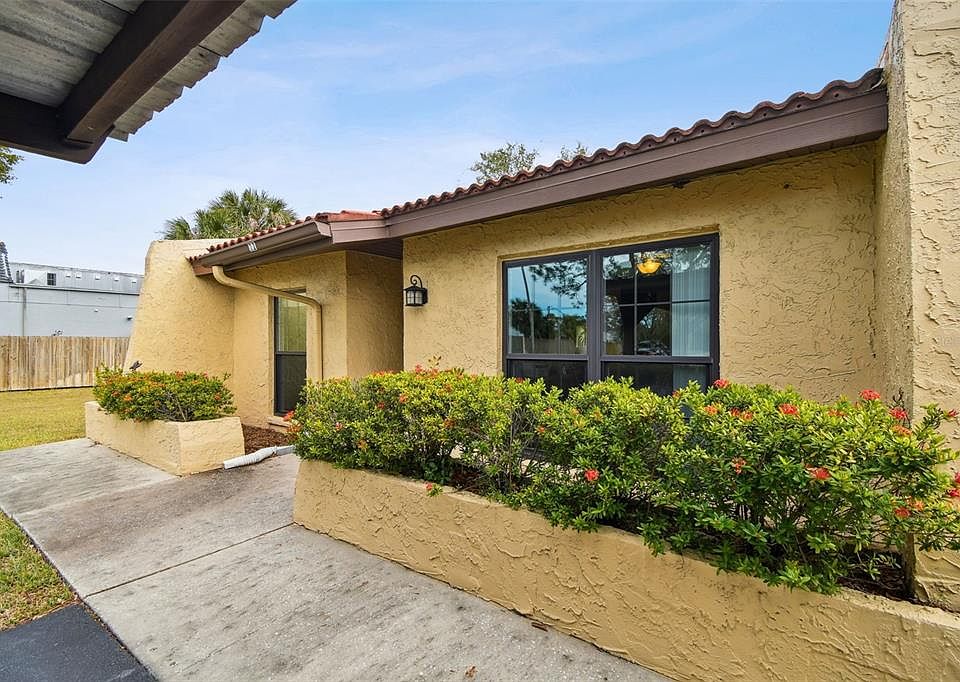 Come and check out this Delightful, Beautifully Updated Fully Furnished 2 bedroom, 2 bath Villa, steps from the Pool in the Highly Sought after Villa Nueva Community. This spacious home boasts a Desirable Open Floor Plan featuring a Large Living Room/Dining Room Combo. The Renovated Kitchen includes Stainless Steel Appliances, Newer Cabinetry, Lighting, Granite Countertops, and a Large Built-In Pantry. The Primary En Suite Bedroom boasts a Walk-in Shower and Separate Vanity along with 2 Closets (one for wardrobe and one for linens). Sliding doors from the Living Room open to the Lanai creating a seamless blend of Indoor/Outdoor living. Offering both comfort and convenience the Fully Enclosed Lanai can double as a Office or Bonus room while the Covered Carport includes a Storage Shed. Community living has never been more convenient with monthly maintenance of $506, covering Cable, Internet, Water, Sewer, Trash, Pest Control, Grounds Maintenance, and access to Community Amenities, including the Community Pool and Clubhouse, perfect for relaxing or socializing with neighbors. For your peace of mind, this move-in ready home features NEW Hurricane Windows (2023), NEW HVAC (2023), In-Unit Washer and Dryer, Luxury Vinyl Plank Flooring, and Tankless Hot Water Heater. The Outdoor Back Patio includes a Grill for all of your outdoor cooking. Don't wait to check out this home, these Villas rarely come on the market as only one sold in 2024. BONUS: Being in a Non-Flood Zone, there was NO damage from the 2024 hurricanes.