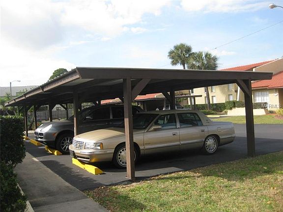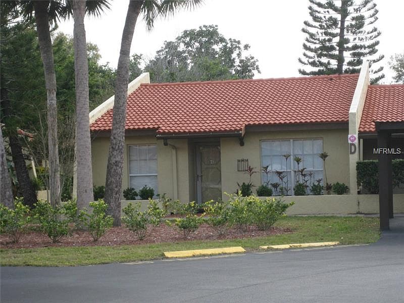 Spacious 2 bedroom 2 bath end unit VILLA in Villa Nueva. Units rarely come on the market in this pristine villa community! This home features a 12x25 Great room with wood laminate flooring in the dining area and carpet in the living room area. This end unit is very light and bright due to the extra side windows. Large master bedroom with 2 closets, 2nd bedroom also features 2 large closets. Large Kitchen with very large pantry closet is open to the Great Room.Drop down attic for added storage. The lanai overlooks the beautiful tropical landscaping. Immaculate and move in ready! Great location! Easy commute to Tampa/ St Pete, the beaches, shopping and airports. Easy show, quick closing possible! Rentals allowed, Room sizes approximate.