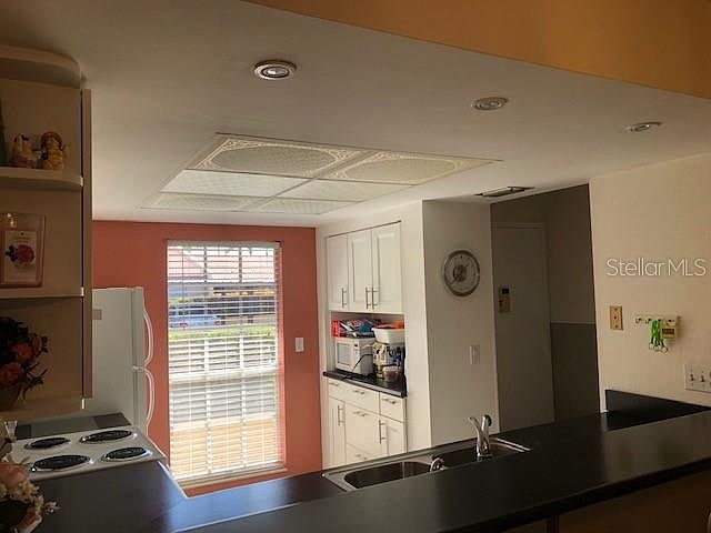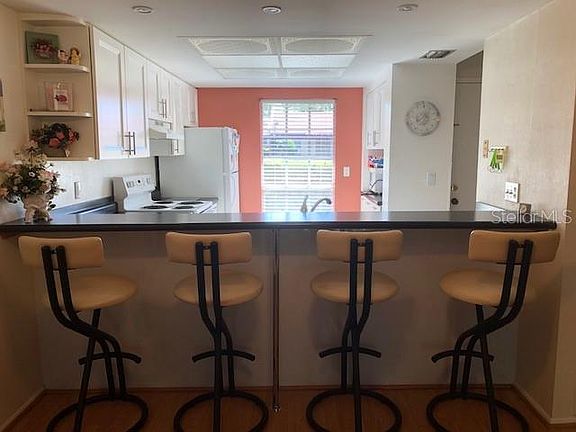 Welcome to Villa Nueva!Villa Nueva is a secure and desirable Condominium located on Ulmerton Rd. Here you will find a cozy and modern End Unit Condo with 2 bedrooms and 2 bathrooms. As you enter the Condo you will find a spacious Living/Dining room combination with laminate flooring. The light and bright Kitchen features recently fitted kitchen cabinets and a breakfast bar. The Spacious Master Bedroom has ample closet space and an en suite Master bathroom. In the Bathroom you will find a modern walk in shower and upgraded toilet. The Stack-able washer and dryer are also located in the Master Bathroom. The Guest Bedroom features upgraded vinyl flooring and ample closet space.There is an enclosed porch perfect for relaxing and enjoying your morning coffee. Green space abounds in this secluded Complex and that also has a community pool and clubhouse. Centrally located to all that Pinellas County has to offer. This condo has its owner covered parking space with a storage unit right out front. This Bright End Unit is move in ready.
