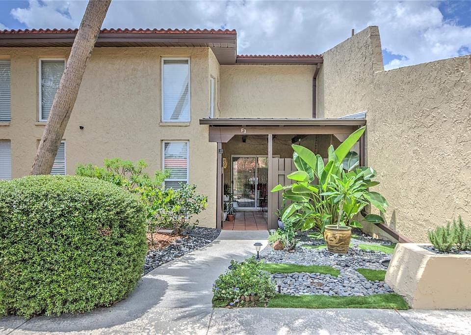 Villa Nueva loft style unit just listed! This hidden jewel centrally located in central Pinellas County is within 20 minutes of some of the finest beaches in the US, airports, downtown Tampa and St. Petersburg restaurants, nightlife and culture. This unit features an open floor plan on the main level, including a living room, kitchen, half bath, and storage closet that has a washer and dryer hookups. The kitchen includes stainless steel appliances, modern cabinets, granite countertops, and lots of storage space. The Kitchen remodel features a raised ceiling and the removal of the partition wall that offers a light and bright open space. Through the sliding glass doors from the kitchen, you’ll be delighted by a large and peaceful, completely fenced-in private patio oasis. The second floor features a dreamy lofted bedroom with bamboo flooring, a glass half wall and night lighting, a large walk-in closet with customized cabinets, attic access, a bathroom that has a brand new vanity, and an extra deep tub for luxurious baths. The interior has been freshly painted in 2022, Brand new A/C 12/2022., New Bosch Dishwasher 1/2023. The back patio is a garden retreat featuring tile and wood decking and includes the gorgeous patio furniture, BBQ, chaise lounge, large terra cotta pots of dwarf citrus, and herbs. The front patio is also enclosed and features a covered tin roof, porch swing, patio furniture all included. Having both a back and front patio are the coveted bonus few have at Villa Nueva. The community has a beautiful swimming pool and clubhouse. There is a community laundry room but if you prefer there is w/d hook-up in the unit. Covered carport with private storage. There is also ample guest parking. LOW monthly maintenance includes internet, Wi-Fi, water, sewer, trash, exterior maint,. roads, reserves, pool, clubhouse and more. Don't miss out on this one!!