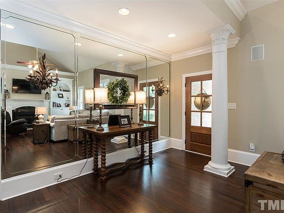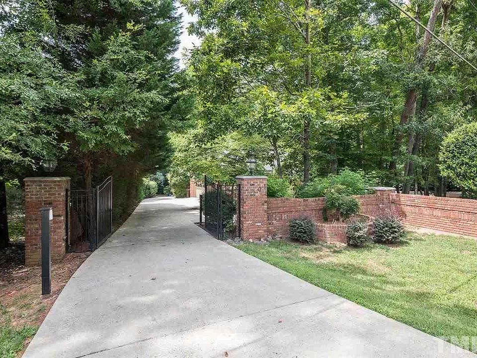 Set on an acre, this executive home has a guest house & gated entrance. Main home has Brazilian hardwoods, 3 fireplaces, 1st floor owners suite, each bedroom has its own bathroom, a bonus room, & the most spectacular screened-in, perfect for autumn evenings. Lives like 5 bedrooms (4 BR Septic Permit in process). Guest house has full kitchen, living & large bedroom. Ideal for guests, homeschooling,or future plans. 4 total garage bays. Completed fenced. Moments from Umstead Park, downtown, 440 and 540.