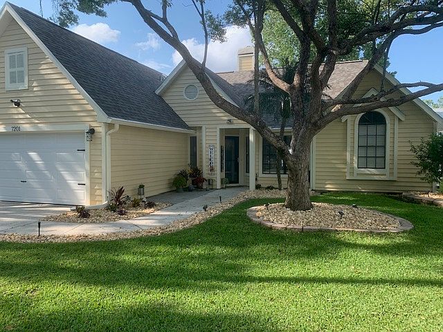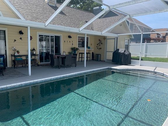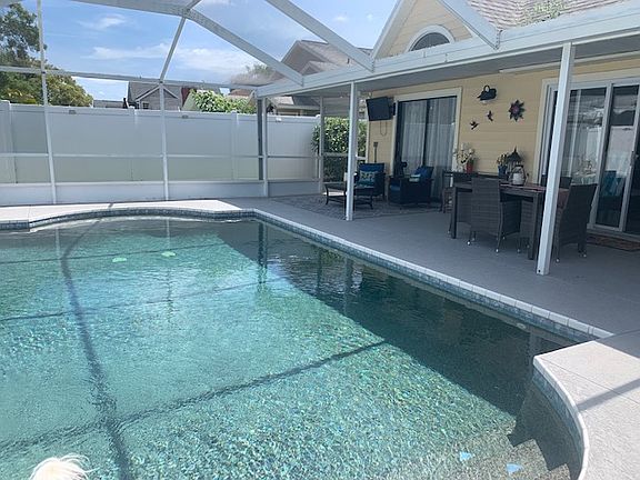 RENTED - Lovely saltwater pool home available July 1. This 3/2 split home is open with vaulted ceilings and a fenced yard. Nice-sized inground pool with pool service included. Large master and huge master bath with 72" jetted tub. Nice-sized secondary bedrooms with large closets. Kitchen, appliances, washer & dryer, roof, interior & exterior paint are all newer. There is attic storage above the garage and secondary bedrooms. Shed out back, but there isn't any need for a lawn mower as yard service is provided. There is even an entry/coat closet. One smaller dog is welcome with a pet fee. No cats. Availed for the end of June move-in. First month's rent and deposit required. I accept Zillow applications. The only application fee is to Zillow. One year lease, rent, plus utilities (trash, water & electric) Lawn mowing and pool service included.
