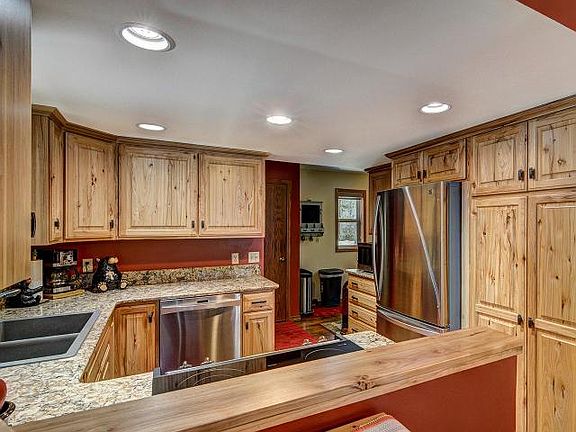 Beautiful and nicely updated home offering the privacy of 8.9 wooded acres and approximately 800 feet of south facing frontage on Long Lake. The main level of the home features a remodeled kitchen with hickory custom cabinets, quartz counter tops, newer appliances and Mannington Vinyl Plank flooring. The open concept design also offers a gas fireplace in the living room and a wall of windows providing unlimited views of the lake. A laundry room, remodeled bathroom with a walk-in shower and a spacious lakeside bedroom with walk-in closet complete the main level. The finished, walk-out lower level includes a family room, full bath and 2 bedrooms. Outside you will appreciate the attractive new vinyl and stone exterior, wrap around lakeside deck, 2-car garage and the Generac whole house generator. All this on a nicely landscaped lot with sand swimming frontage. Long Lake is a private and peaceful 68 acre lake offering opportunities for great fishing, boating, kayaking and canoeing.