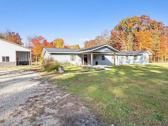 This is your chance to own an amazing property featuring a 4-bedroom, 2-bathroom ranch-style home on just under 10 acres, along with a large custom pole barn. Privately nestled in the woods, the ranch-style house boasts a large yard and gardens. The custom kitchen includes stainless steel appliances, granite countertops, a built-in wet bar, and hardwood cabinets. The expansive living room includes a real wood fireplace and a wall of windows that provide stunning views of the backyard. The primary bath includes a custom-tiled walk-in shower and a full clawfoot bathtub. Major updates have been completed, including a durable metal roof, all new plumbing, energy-efficient Jeld-Wen windows, insulation, vinyl siding, and most of the flooring replaced. It does require some finishing work, including flooring for the converted garage. Seller willing to provide funds for this project. This property has been used as a hobby farm and is well-designed for self-sufficiency. It features an impressive new pole barn built in 2022, capable of accommodating anything up to a semi-truck. At roughly 3,900 sqft, it is fully insulated with 16-foot ceilings and an 11x14-foot main door. Inside, it includes a finished office and two workshops, with heating provided by two wood stoves. The pole barn is plumbed for a bathroom, and framing for an additional guest quarters has been started. Additionally, it has a full concrete loading dock sized for commercial use. Need more space? There is also an old-fashioned 20x32-foot red bank barn built in 2016, connected to the fenced pastures in the back. Also included are two large greenhouses. The options are endless, whether you envision an equine retreat, hobby farm, or even a home business. As an added bonus, it’s conveniently located near the Fred Meijer Heartland Trail. This could be your new home! See the available full 3D walkthrough.