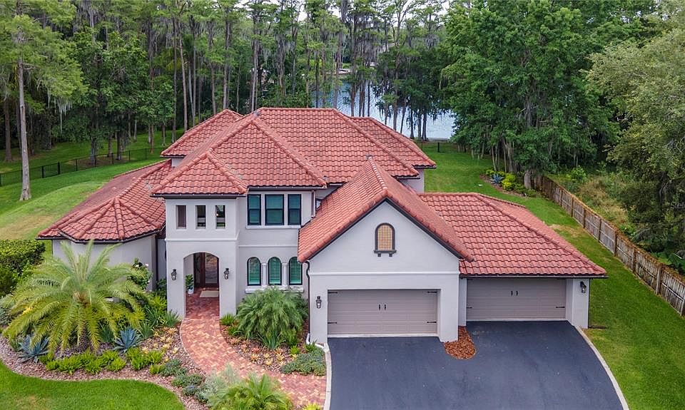 Rare is the opportunity to own an exquisite lakefront estate such as this home in Odessa. As you drive down the tranquil, oak-lined street you’ll feel an instant sense of belonging. Your senses are awakened by the sights and smells of the fresh air and lake breezes. At the end of the cul-de-sac is the culmination of all your dreams. Through the gated entry, the meandering driveway draws you to this impressive home, perfectly placed on a 1.10-acre lot, situated between two ski lakes, Rock Lake and Lake Josephine – offering 247 feet of shoreline. Designed by local architect Roberta Klar of Klar and Klar Architects, you’ll enjoy lake views from nearly every room. Four bedrooms, with an owners retreat and another ensuite guest room downstairs, plus two more bedrooms, loft and theater room upstairs. Three full and three half bathrooms, office downstairs directly off the owner’s retreat, formal dining room, a Great room – Kitchen combo and laundry room downstairs. As you enter through the 8-foot front door into the grand foyer you’ll be drawn to the heart of the home which focuses around the open plan great room/kitchen area with large island, solid wood painted cabinets, gorgeous granite counter tops, Viking stove and sub-zero refrigerator, all looking out over the saltwater pool and lush green backyard and lake views. The indoor and outdoor spaces are a perfect match and are begging for large gatherings and barbeques. The views of the pool, yard and lake are all contiguous. No detail was overlooked on this newly built pool - from its travertine pavers under foot to the spa and large sun shelf. Your view out to the lake is both civilized and natural. Every square foot of the yard has been professionally and meticulously landscaped with lush blooming plants, perfectly placed palm trees, privacy hedges and subtle landscape lighting. Just beyond the fencing, you’re met with countless cypress trees, all laced with Spanish moss providing that old Florida feel. The water’s edge brings you to a wide waterway connecting Rock Lake (54 acre ski lake) and Lake Josephine (48 acre ski lake). You’ve got easy access for boating with your own private boat ramp and rear facing garage to store your boat, jet skis or kayaks. The owner's pride in ownership can be seen throughout including updates with POOL AND SPA INSTALLED 2023, 2 of 3 AC’s REPLACED IN 2023, FRONT AND BACK LANDSCAPING 2023, ROLL-DOWN HURRICANE SCREENS INSTALLED ON BACK LANAI 2023, HURRICANE WINDOW REPLACEMENTS 2023, AUTOMATIC FRONT GATE AND BLACK ALUMINIUM SIDE/BACK FENCING 2022, SECURITY CARMERAS AND ALARM 2022, 13,000 WATT GENERATOR WITH HOOK UP TO ELECTRICAL PANEL 2022, WATER SOFTNER AND TREATMENT SYSTEM 2021, REVERSE OSMOSIS WATER TREATMENT SYSTEM IN KITCHEN 2023 and SEPTIC INSPECTION 2023. Enjoy nearby farmer’s market, horses and cows, great schools, including Steinbrenner High School, close proximity to the NW Tampa YMCA, Whole Foods, yet also close to Pinellas County via Race Trace Rd. Easy access to the Veteran’s Expressway and only 20 minutes from Tampa International Airport. Schedule your private showing today. **Watch fly-through video and virtual walk-through**