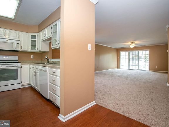 Stunning two bedroom, two bath first floor condo with 1 car garage in the highly desirable Park Place development in Mount Laurel. This open floor plan is perfect for entertaining! The kitchen has great storage with a pantry, extra wall cabinets along with newer appliances. There is a large pass through window opening from the kitchen to the dining area. The main living space has crown molding, updated ceiling fan and light fixtures, and large triple slider to the covered patio. Both bedrooms have ample closet space, updated ceiling fan in master, and fresh paint. You will love the back patio for morning coffee, evening drinks or al fresco dining