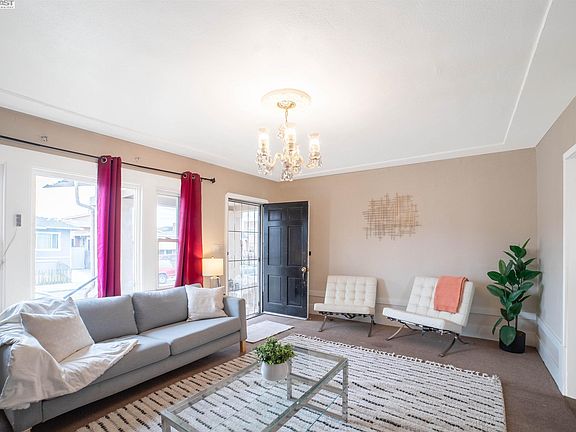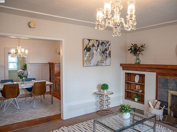 Stunning home with historic charm and plenty of character!! You will enjoy: a formal dining room, built in cabinetry, vintage chandeliers, wood burning fire place, a spacious layout and Two Bonus Rooms that are not included in square footage. The classic kitchen features: a breakfast nook, white cabinetry, and granite counter tops. Stairs going up lead to two generous size bedrooms with plenty of natural sunlight, walk-in closets, and original wood floors. Also on the 2nd floor you will find a gorgeous bathroom with sleek finishes and a vintage tile backsplash over the shower/tub combo.The tandem garage offers a washer and dryer hookup, plenty of room for storage and provides parking for up to two vehicles. The two bonus rooms located downstairs has a separate entrance and can be used as an office, play room, yoga room or another bedroom. Sitting on a corner lot, you will also enjoy a fenced front yard and a private back/side yard, perfect for relaxing and or entertaining. Conveniently located near San Francisco, the Oakland Coliseum, public transportaion, and restaurants. Open Saturday from 330-530and Sunday from 3pm-5pm!!!