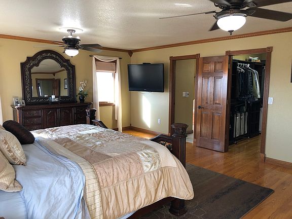 UNDER CONTRACT. Fully remodeled 5 bedroom, 3 bath custom home with beautiful views of the Rocky Mountain range and just minutes away from downtown Cheyenne. Large kitchen with all custom knotty cherry cabinetry, beautiful quartz counter tops, breakfast nook, and all stainless appliances. The large master bedroom has a custom walk in closet and large master bath with heated floors, his and her sinks, walk-in custom shower with seat and stone floor. There are two additional large bedrooms upstairs with spacious closets. The upstairs guest bath has a heated and jetted tub, custom cabinets, quartz countertop, and heated tile floor. The main level has beautiful custom hardwood floors in the living room, dining room, office, main entry, hallway, and master bedroom. Very large pantry just off the kitchen for quick and easy access. Main level laundry is complete with custom cabinets, quartz countertop, and is built for front-load washer and dryer. The garden level has two large bedrooms with nice walk in closets. The bath is beautifully refinished with a large soaker tub, custom cabinets, quartz countertop, his and her sinks, and heated floor. This home comes with a pre-wired surround sound theater area that is adjacent to a custom mini kitchenette for easy access to snacks and refreshments and an additional very large recreation area. This ranch home has a newly refinished and expanded barn and lots of room to grow and expand. Includes a large attached 3-stall garage. All of this along with 10 acres to roam. Central AC.