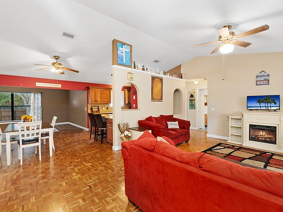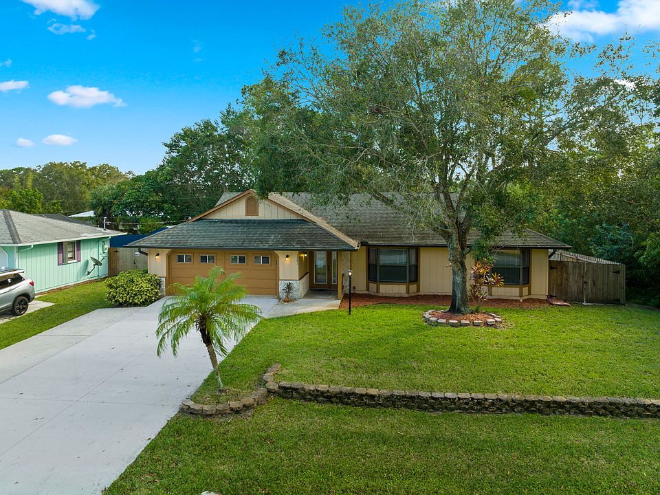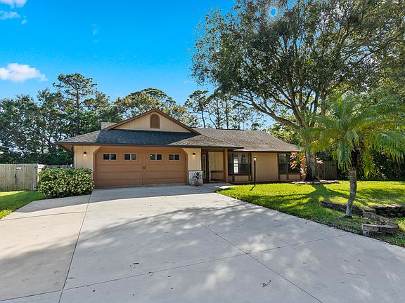 Accepting backup offers! Priced to personalize! This lovely move-in ready home boasts a split floor plan that flows from spacious living area with soaring vaulted ceilings, into a warm spacious kitchen wrapped in granite countertops, and bonus family room ideal for home office or recreation room! Wood parquet flooring is featured throughout the home with both spare bedrooms featuring brand new carpet and paint! Stay cool with a 2015 AC and enjoy hot showers with a 2016 water heater! Brand new 2021 driveway features additional parking space! 2 car garage was converted into additional living space but can easily be converted back. Enjoy peaceful mornings on your 12x13 screened-in patio looking over your large privacy fenced-in backyard featuring two sheds and a dog run. (room sizes approx) Located in desirable Lakewood Park featuring multiple parks, ball fields, walking trails, playgrounds, tennis & basketball courts and more! Great proximity to Fort Pierce inlet & Jetty to the south and Vero Beach to the north!