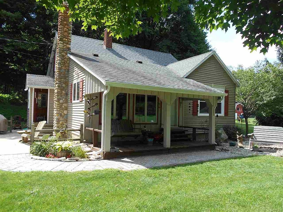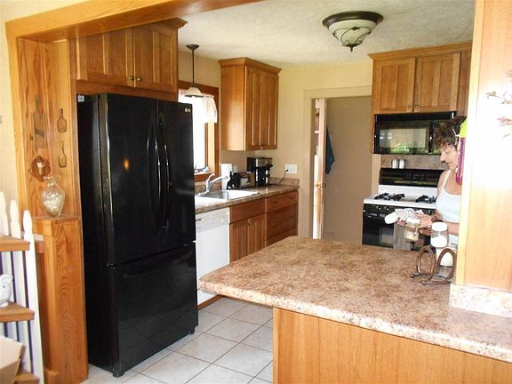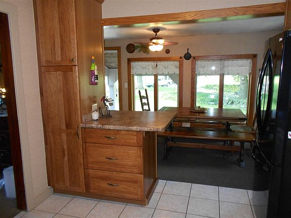 Wonderful 26+ farm property with fenced area and 2 stall barn for horses, pole barn, tacking barn, and woodlands is a great buy. Over 23 of 26+ acres in farm ground, delightful tree lined drive, three bedroom home with basement, patio, wonderful flower garden, two story detached garage, basement and central air. Delightful updated kitchen includes breakfast bar and pantry, as well as many cabinets, appliances, and dining area off kitchen. Living room is L shaped with cozy electric fireplace. Two main floor bedrooms separated by bath with walk in shower. Upstairs bedroom and sitting area are bright and charming. Replacement windows for efficient heating and wood fired/gas heat. Wonderful patio area leads to two story detached garage. Make an appointment to tour this property!