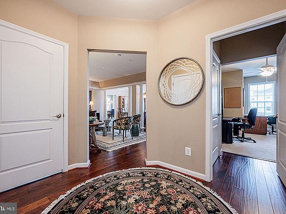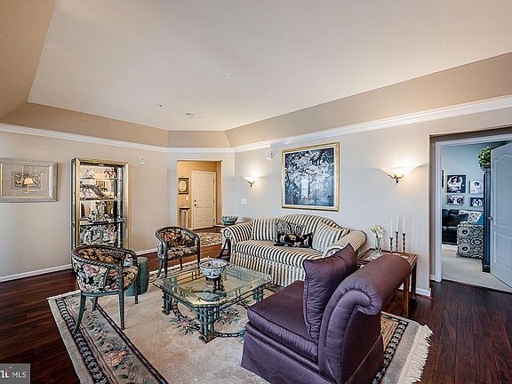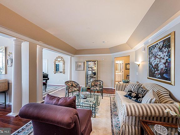 Gorgeous condominium located in the highly sought after gated community of Highlands at Quarry Lake offering a secure lobby with elevator, attached garage, one reserved parking space, a separately deeded storage unit. lush landscaped grounds, and abundant community amenities; Hardwood floors, stately columns, tray ceilings, classic moldings, lofty windows, and an open concept floor plan perfect for entertaining family and friends; Eat-in kitchen equipped with sleek appliances, granite countertops, pantry, breakfast bar, and a casual dining area; Primary suite adorned with a walk-in closet and en-suite full bath with dual vanities, soaking tub, and glass enclosed shower; Two additional bedrooms, full bath, spacious den, and laundry complete this wonderful home; Community Amenities: Located in the stunning gated community of Quarry Lake in a secured elevator building, enjoy having convenient access to commuter routes I-695, I-95, I-83, and being just minutes from Suburban Club Golf Course, Woodholme Golf Course, and within walking distance to the town center with a variety of shops, restaurants, Fresh Market, Starbucks, Walgreens, and more. Amenities also include a community clubhouse offering spectacular views of the Quarry. Inside features a fitness center, a sauna, massage rooms, a common lounge area, and an event facility with a catering kitchen. Terraced staircases lead down toward a beach that embraces the lake with a fire pit, an oversized heated outdoor pool, a whirlpool, a pavilion, tennis courts, and walking paths.
