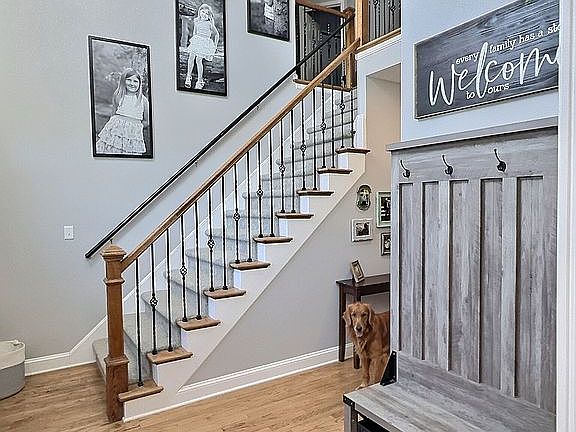 The COMPLETELY REMODELED KITCHEN includes white SHAKER CABINETS with two large pantries, plenty of cabinet space, GRANITE countertops, updated backsplash and an island with BUTCHER BLOCK countertops and wine rack. Sliding glass doors that lead you to an area for grilling on the back deck. New lighting throughout with updated light fixtures, large windows for natural light and a REMODELED LAUNDRY/MUD ROOM with new tile, cubbies, hooks and shelves.