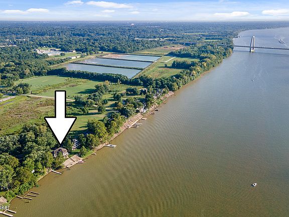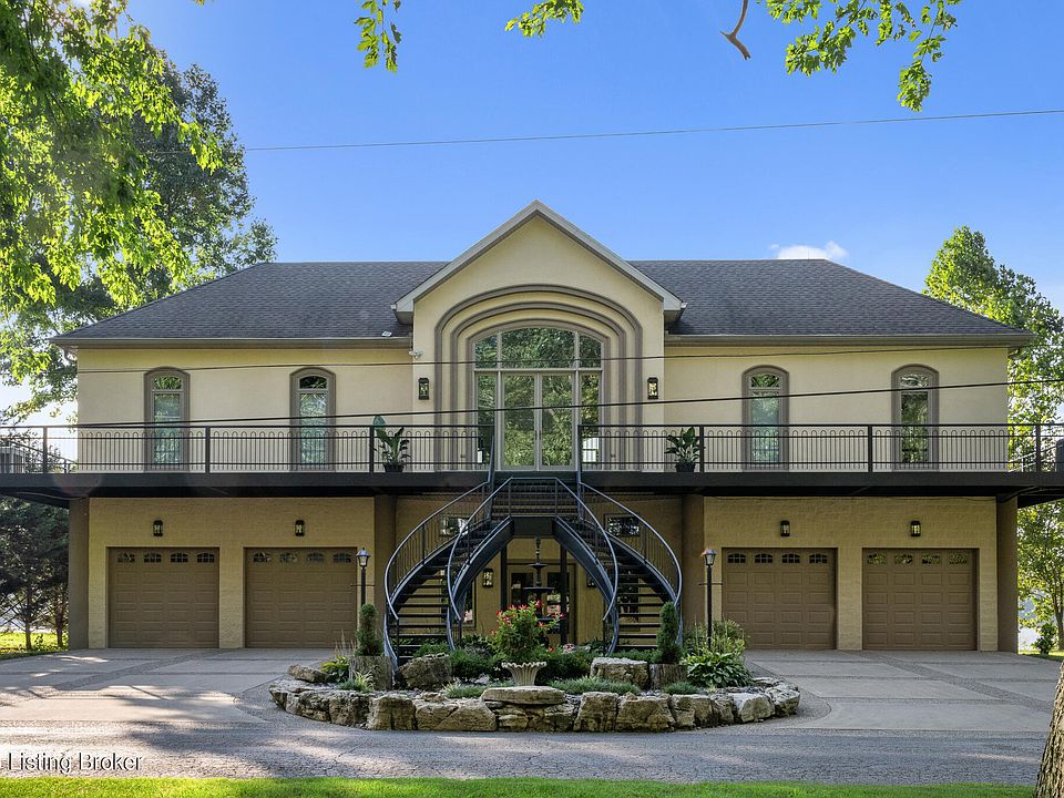 If you have been looking for waterfront living, here is your new home! This stunning home is an absolute gem just minutes from Downtown Louisville. This unique home offers an open floor plan with an abundance of windows and a wraparound deck providing panoramic views of the Ohio River. Situated on a large lot, surrounded by parks and a nature preserve, this property offers plenty of outdoor space for relaxation and recreation that also includes your own dock. The main level of this home features a beautiful entry way that opens to the spacious kitchen that has been updated with custom cabinets, leathered granite, Wolf Range, Thermador Refrigerator and much more. The soaring ceilings and natural light make this space a pleasure to cook and dine. The open kitchen leads to the dining room and living room with spectacular views. The primary suite features a fireplace, an updated bathroom with dual vanities, steam shower, heated floors and a soaker tub, large walk-in closet with custom cabinetry and breath taking views. Two other bedrooms, full bathroom, half bathroom and laundry complete this level. The third-floor loft makes an additional family room or in home office space. The lower level may be accessed by either the stairs or the commercial grade elevator. The lower-level features another living area, full bathroom and a sun porch. There are two garages with double door entrances with enough space for 4 cars. Whether you're looking for a peaceful retreat, a stunning place to entertain or a home with captivating features, this masterpiece offers a unique blend of modern comfort and natural beauty. Don't miss this opportunity to make this dream home your own!