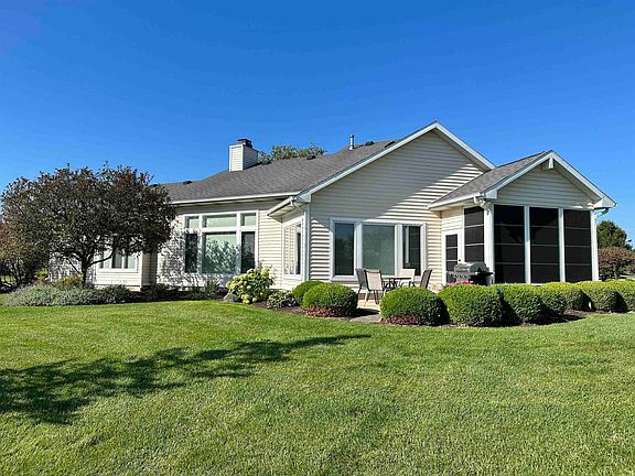 OFFER RECEIVED. All offers due 9/28/2023 by 6PM. You will love this Cherry Hill Villa, on the Golf Course, built by Delagrange, featuring 1868 S.F. plus the 3-Season Porch, 3 Bedrooms, 2 Full Baths, separate Laundry Room w/sink, Spacious Great Room with Gas Log Fireplace, remote controlled, Transom Windows and a Large Dining Area with fabulous Golf Course Views. NEW ROOF, GUTTERS & DOWNSPOUTS installed last week! White Painted Cabinets with Gorgeous Granite Countertops with lovely undermount composite sink and Eating Bar. The Primary Bedroom features a tray ceiling w/fan and adjacent bath with Tiled Walk-in Shower, Twin Sink Vanity, a private toilet area & a walk-in Closet with white laminate closet system. Ceramic Tile Flooring in foyer, kitchen, dining, laundry & Bathrooms. 3-Car Garage offering a divided off 3rd bay w/heater for a workshop and a permanent stairway to a floored attic. Simplisafe Security System & smart thermostat. Overlooks the 8th Tee & fairway & the #7 Green. Only 2 miles to 469 to get wherever you want to go quickly & easily. 5 minutes to Meijer, Menards, Walmart & restaurants like Applebee's & Cracker Barrel.