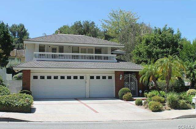 A lovely private courtyard welcomes you to this sophisticated executive home with beautiful hardwood flooring throughout the lower level, rich designer colors, plantation shutters & gorgeous woodwork. The study has a built-in entertainment unit, cozy fireplace & French doors which open to the back yard with several patios & low maintenance - perfect for entertaining. The ceilings in this home are stunning & there is an incredible sky light in the formal entry. An abundance of natural light pours through the kitchen & the nook has a built-in desk & fabulous wall of windows. A large private balcony off the master suite offers a treeline & mountain view & the master also has designer laminate floors & a large walk in closet. Two of the secondary bedrooms are used as offices, both have mirrored wardrobes, & the fourth bedroom has a walk-in closet with built-ins. The second floor is conveniently wired for internet access. The guest bath is beautifully remodeled & there is also a large laundry room with a storage closet. This property is located in an equestrian community with access to over 100 miles of horse trails throughout eastern Orange County. Wonderful parks and nature reserves are within walking distance..