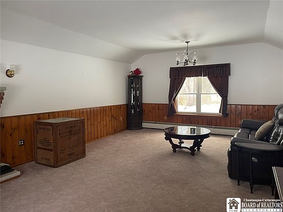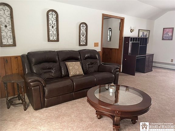 Nice ranch and storage barn situated on 2 acres of land in Westfield school district. House sets back from road in lovely setting with no close neighbors. Westfield electric, new boiler system, baseboard heat, metal roof, large living room with fire place with wood burner insert. Some rooms have own thermostat. New survey. Lake Erie beach and marina just 10 minutes to Barcelona. Refrigerator, stove, washer/dryer, new dishwasher included in sale. This is a great vacation home, starter home, priced to sell. TAXES will be lower as new survey is less acres.