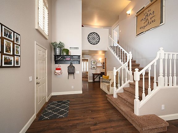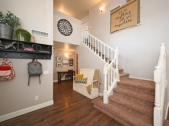 This feels like home the minute you walk in the door. Stunning entrance with vaulted ceilings and warm laminate wood floors. Family kitchen has been opened up to the dining room and cabinets reorganized to create an open floor plan. Kitchen has newer granite counter tops and appliances. 1st floor bathroom has been completely and beautifully remodeled. Downstairs bedroom has murphy bed allowing for flexible use. Large master bedroom with a beautiful barn door to the master bath and walk in closet. Master bedroom has a sitting area or it can be used as an office. Oversized tile in upstairs bathrooms. Sit back and enjoy entertaining in your backyard. Covered patio runs entire length of house with upgraded stucco pillars. Fenced pool with beautiful blue pebble finish and water feature.