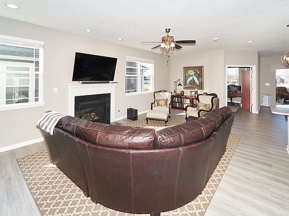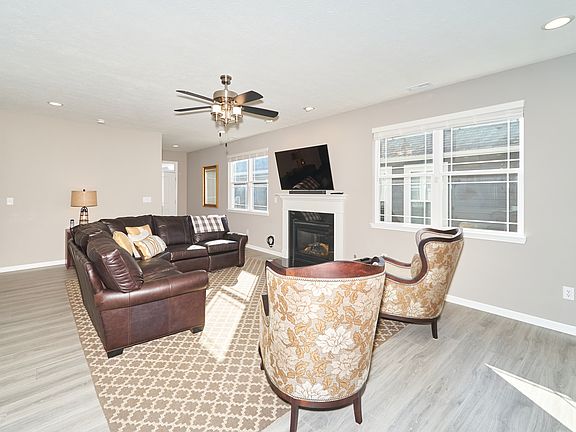 Beautiful 2 year-old, open concept home located on premium lot w/ view of pond is a must see! Upgrades galore! Kitchen is appointed w/ granite countertops, 4-burner gas cooktop w/ separate oven & microwave. Fireplace in adjacent great room is ready to enjoy on chilly nights! Primary bed w/ ensuite including walk-in shower. 2nd bed is spacious & adjacent to 2nd bath. Office w/ double doors can be converted to 3rd bed. Off the dining room is a bright & cheerful sunroom which exits to 12x12 concrete patio. All doorways & halls are expanded for accessibility. 2-car garage w/ bump out for extra storage. Home is appointed w/ water system by Kinnetco. Irrigation system installed last year makes for easy lawn care! Make an appt to see this home!