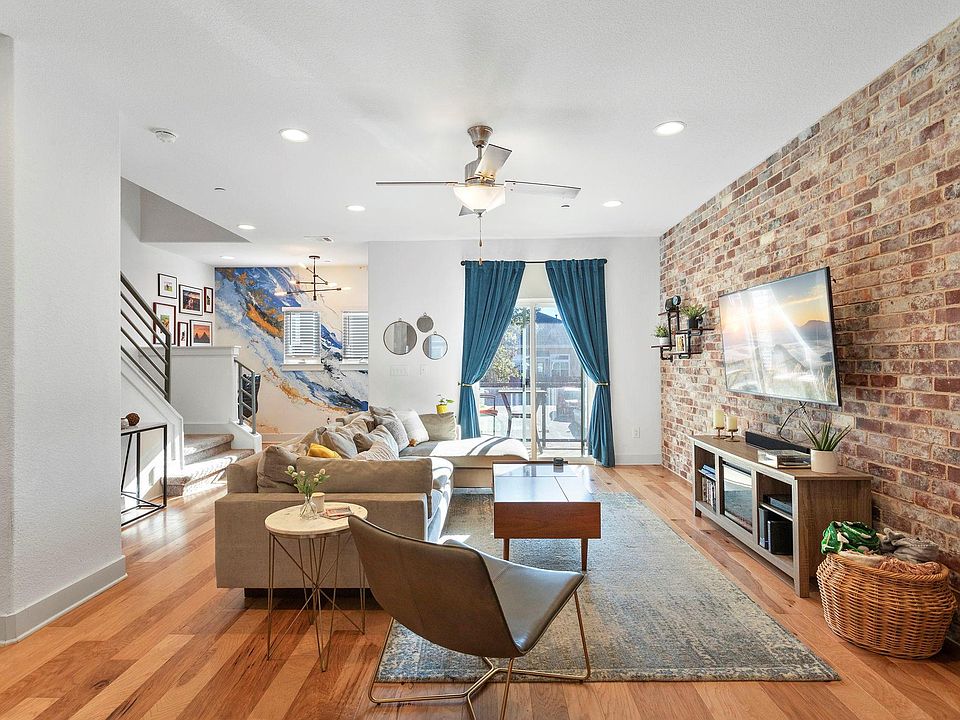 Amazing townhouse in a great location! Loaded with custom features, this home is a one-of-a-kind. Easy access to the highway and only 12 minutes to downtown, 7 min from the airport and tons of restaurant/grocery/entertainment options just down riverside (1-2 miles). This beautiful gated community has nice walking paths, dog park and pet stations all around the neighborhood. Right outside of the home is a huge field that is great for catching some air and/or walking your fur baby. Enjoy a patio view on each floor including right off the master bedroom. Nest Thermostat, Wood floors and granite countertops.