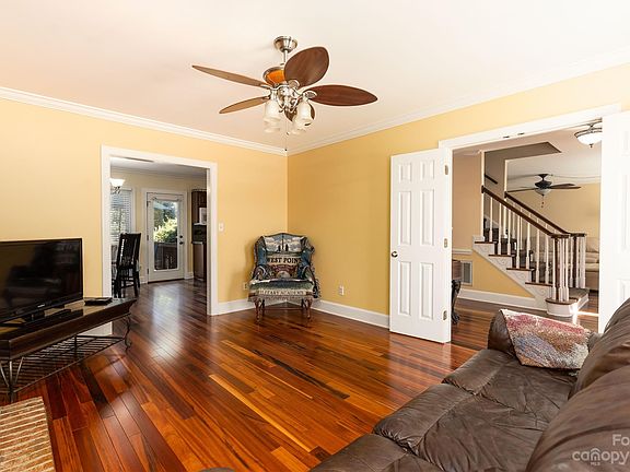 Welcome home to stately full brick two story house in fantastic South Charlotte location! Peaceful community without HOA restrictions. Totally serene 0.58 acres corner lot will impress you with lavish garden filled with vigorous plants, flowers, herbs and vegetables - it is true gem of Charlotte! Home has Tigerwood flooring throughout, dual staircase plan, and plenty of natural light. Formal area with lovely molding and wood burning fireplace. Spacious master suite with custom closet, master bath with separate tub and shower. Rooms are very well sized and 4th bedroom makes it a great bonus. Large deck overlooking garden is perfect for morning coffee or entertaining friends. Do not miss this one!