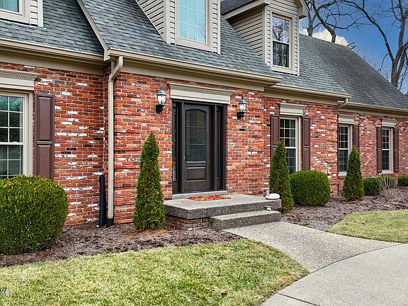 Upstairs, find three generous bedrooms, including a potential guest suite, two full baths, and a separate HVAC system for added comfort. The walk-out lower level is built for entertaining, featuring a family room with a fireplace, built-in bar, game room, exercise room, full bath, and cedar-lined closet.Outdoor living shines with an elevated deck featuring water-resistant materials, a covered patio below, and a fully fenced backyard. A charming circular provides extra parking and gives the exterior a sophisticated look. Enjoy easy access to the neighborhood pool, tennis courts, nature trails, and Harrods Creek for kayaking. Conveniently located near Prospect's top shopping and dining, with downtown Louisville just 20 minutes away. An exceptional home in a coveted location, schedule your private tour today!