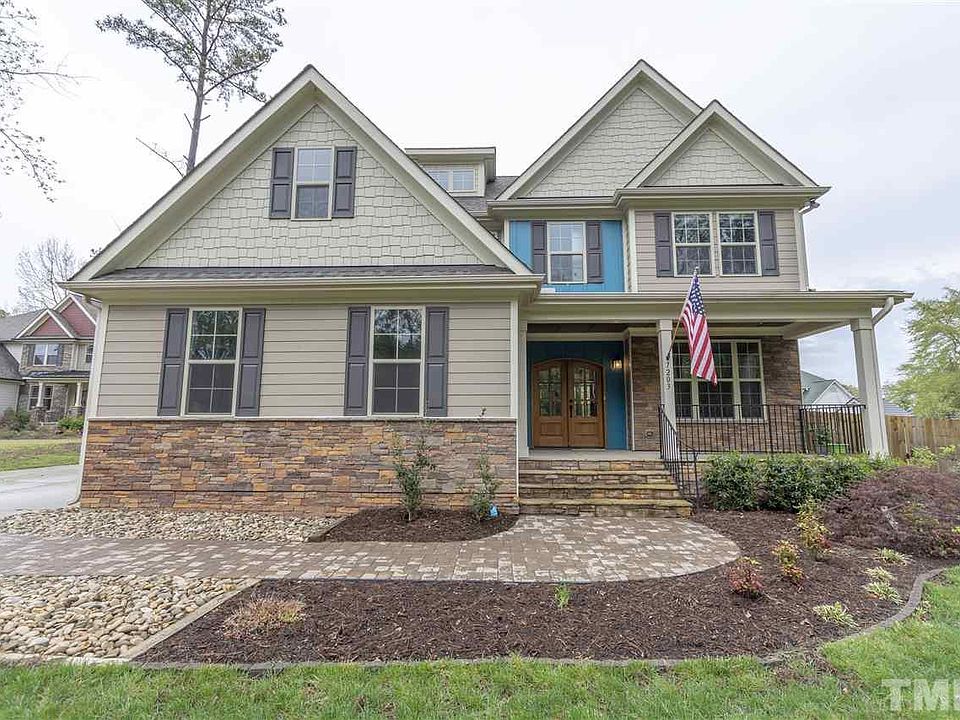 "Like-new 2016 custom home w/ the upgrades you wish builders would include: fenced back yard w/ woods beyond (just under 1 acre total), river rock turn-around, gravel parking pad w/ vehicle gate to back, paver patio & walks, established lawn & landscaping, Nest thermostats, security lighting. Open floorplan w/ gourmet kitchen, 1st-floor bed & bath. Granite counters, wood floors, upgraded moldings, sealed crawl space. 1.5mi to Crossroads shopping; 5min to I-40/I-440, 10min to NCSU, 17min to RDU."