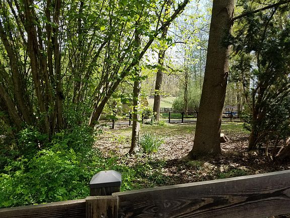 Located on 5 acres, this house has plenty of privacy. The house is set back from the street and is surrounded by woods forest located behind it. The property has a mixture of woods and fields. Neighbors on all sides have horses. We only have chickens and goats. House has 3 wood burning stoves and cathedral ceilings in living and family rooms. Porch and master bedroom have ceiling fans.
