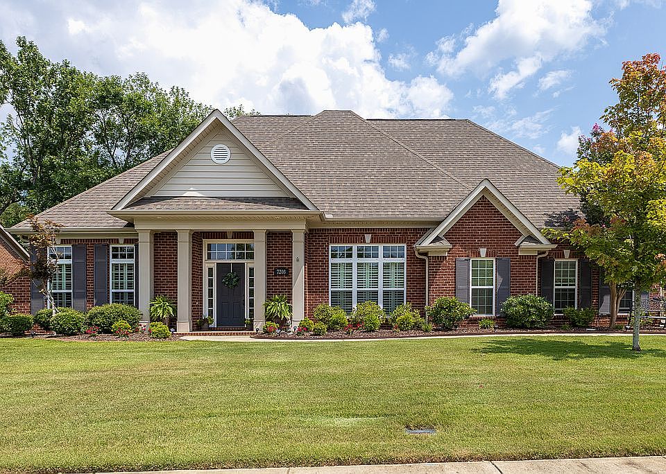 Welcome home to Jones Park! A quiet enclave of 6 homes in an incredibly convenient location in the heart of Jones Valley. This custom, all-brick home is steps from shopping, restaurants, fitness centers, walking trails, and more. Built in 2014, this impeccably maintained property has fantastic curb appeal w/ expert landscaping on a spacious, level lot. Step into the foyer w/ vaulted ceilings & grand staircase leading to the ideal floor plan w/ defined spaces that foster an open flow. Elevated finishes include crown moulding throughout the main level & custom plantation shutters & window treatments. The private study w/ built-in bookcase is an ideal place to work or retreat w/ your favorite book, & the elegant dining room w/ Waterford chandelier is perfect for entertaining & holiday dinners w/ friends & family. Enjoy the gas fireplace & a good football game in the cozy family room which opens to a spacious breakfast room & kitchen. The well-appointed kitchen includes a gas cooktop, stainless steel appliances, granite countertops, abundant cabinet space, & a bar for extra seating or serving. The main-level primary features 10 ft ceilings, walk-in closet, & ensuite bath w/ natural stone tiled shower w/ bench seat, double vanity w/ granite countertops, & private toilet room. A second, main-level bedroom & full bath are located on the opposite end of the home while the second level has two bedrooms, a full bath, & a bonus room to enjoy playing games or watching TV. There's also fantastic storage w/ two, floored, walk-in attic areas. Step out the back door to enjoy the serene, covered porch w/ trumpet vine & beautiful, fully fenced yard w/ evergreens, crêpe myrtle trees, & encore azaleas. In addition to the 2-car garage, there is a brick, detached garage for any vehicle, boat, or lawn equipment needs, or create a private shop space. This home truly checks all the boxes!