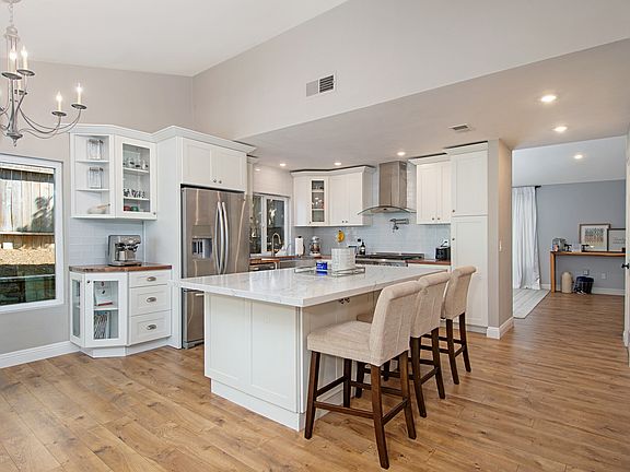 Offered for $899,000 - $939,000! Welcome to 7203 Mimosa Drive, a beautifully remodeled single-level home located in desirable Seaport, South Carlsbad! Step inside to an open concept layout, modern laminate hardwood, new carpet, and more! Entertainer's kitchen features oversized quartz island, butcher block countertops, 6 burner oven, farmhouse sink, glass tile backsplash, and custom 300+ bottle wine fridge! This open-concept home is perfect for entertaining, with custom speakers & surround sound in family room, recessed lighting, new AC, & dual pane windows! Master suite features modern laminate flooring, and remodeled bath with step-in shower & custom tile work. New carpet in additional bedrooms & custom crown molding! Beautiful front porch with custom stone work! Backyard offers added detached 120 sf studio/office with porch. Outdoor living at its finest with patio dining area, mature fruit trees, and large grass area! A short walk to Cinepolis, Vons, La Costa Coffee Roasters, library, Aviara Oaks School (K-8), and more. Scenic lagoon trails nearby! No HOA or Mello Roos!