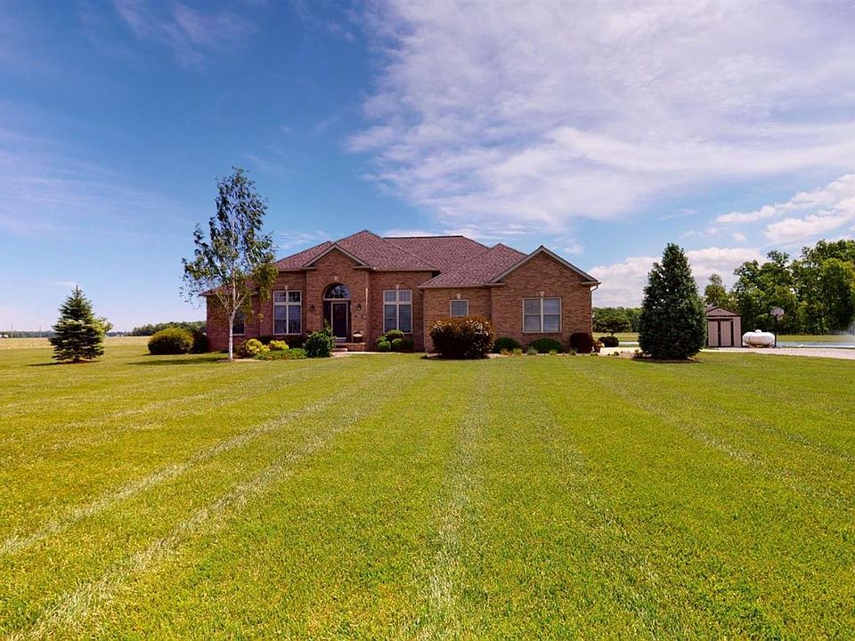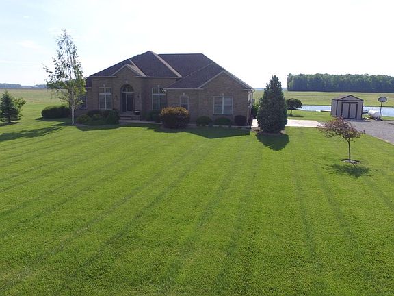 Country living you don't want to miss! Impressive Brick Ranch built in 2006, located on over 5 acres in Seneca East School District. The setting is absolutely stunning with Beautiful Landscaping, stamped concrete drive & back patio with a 60x100 fenced in backyard, a gorgeous half-acre pond with a beach & swimming deck. You will appreciate the beautiful entryway leading into an open concept w/ vaulted ceilings. Wonderful kitchen combo w/ an abundance of storage & island leading into the family room w/ a gas fireplace. Stainless steel appliances & Kenmore elite washer/dryer included. Formal dining area & family room, 4 Bedrooms, 2.5 bathrooms including a spacious master suite w/ a large walk-in closet. First-floor laundry leading into a large 2 car garage. Basement has an ample amount of room for storage, tall ceilings & possibilities of extra living space just awaiting someone's finishing touches. 30x40 insulated outbuilding w/ patio leaves plenty of room for extra storage/work area.