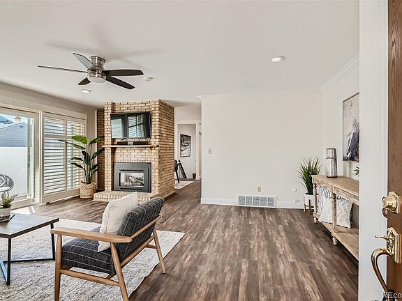 Don't miss the opportunity to own this beautiful 3 bedroom/3 bath ranch-style patio home with low exterior maintenance! As you enter the home, you will be greeted with a large living area complete with custom plantation shutters and a brick fireplace to enjoy during the winter months. (TV and TV Mount included!) The kitchen has been remodeled with beautiful custom cabinetry, granite countertops, pantry shelving, an island, and dining area. Main floor primary bedroom en suite with newly remodeled bathroom and large walk-in closet. Easy access to the back patio through the 2 sliding glass doors. 2 additional bedrooms on the main floor plus a newly remodeled full bathroom. The basement is finished and would be perfect for entertaining with a huge living space, half bathroom, and bar area. All appliances are included in the sale! Laundry closet located conveniently on the main floor with stackable washer/dryer. 2 car attached garage with built-in storage. HOA includes a community pool and all exterior maintenance! You can walk to the Streets of Southglenn Town Center for restaurants, movies, concerts, and shopping. Grocery store, walking and biking trails all nearby too! Other updates include: NEW paint interior (2023), luxury vinyl planking throughout the home (2022), new concrete driveway (2022), air ducts cleaned (2022), regular cleaning and service on furnace/AC, garage door opener (2020), water heater (2017), new kitchen appliances, cabinets, and countertops (2014), remodeled baths (2014), custom plantation shutters, new sliding glass doors, new furnace and AC (2011). Interior Photos will be uploaded and showings start tomorrow, Thursday 6/1!