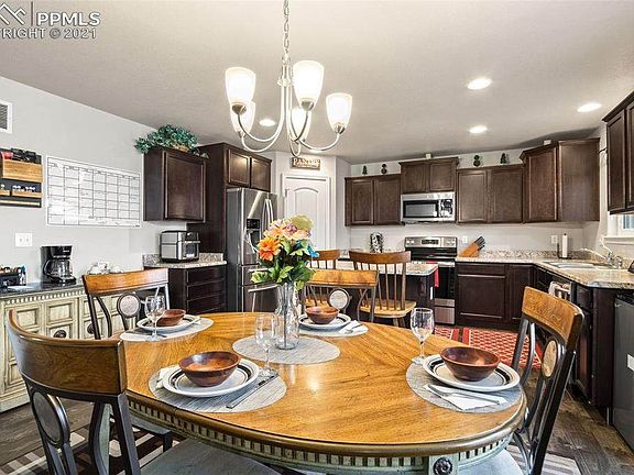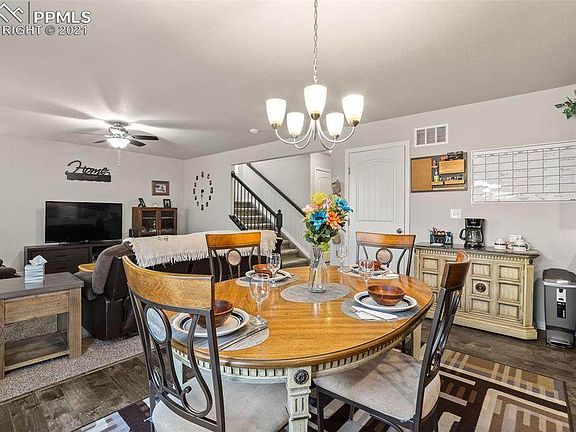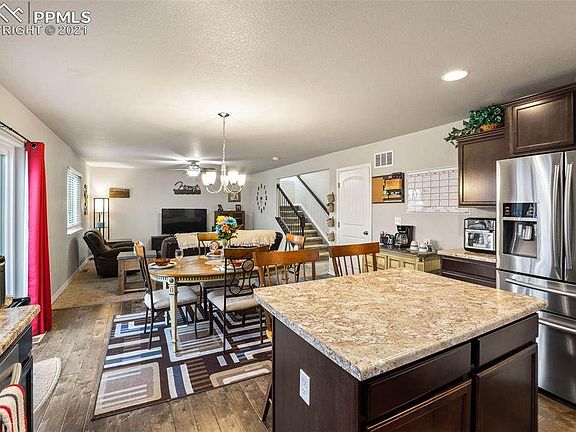 Gorgeous 3 bedroom, 3 bathroom, 3 car garage property in highly desired Ventana subdivison. Open, light and bright floor plan boasting a beautiful kitchen with island, stainless steel appliances and awning window. As you wind your way upstairs you will find a large loft all bedrooms and laundry. Picture window in stairway offers Colorado living at its finest, showcasing the lightly snow dusted mountains. Basement is unfinished and has endless potential. Huge yard that backs to open space and the rec center with pool. Incredible quarter acre, cul- de- sac lot with unobstructed mountain views! Close to Ft. Carson and I-25. You wont want to miss this one!