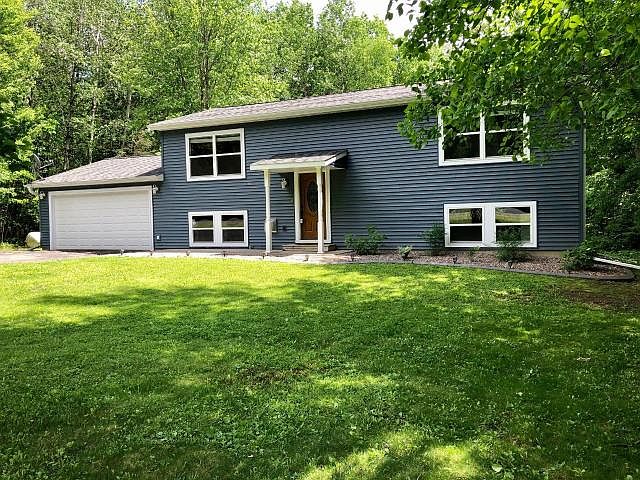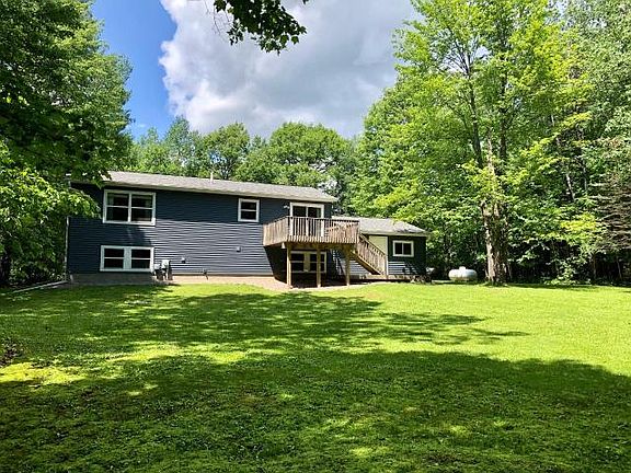 This 4-bedroom, 2 full bath home is located just west of Rhinelander close to Crescent Lake, Northwoods Golf Course, & several nature hiking and biking trails. The kitchen has beautiful custom cabinets with silent drawer/door closures & stainless-steel appliances. The dining room has a patio door to the back-yard deck perfect for grilling and entertaining. There is a spacious living room open to dining room with large window for natural lighting. There are two large main floor bedrooms & a full bathroom with tile flooring to complete the main floor. The lower level includes a family room with a smart control gas log fireplace, two additional bedrooms, 2nd full bath, & laundry room. This property has an attached two car garage, vinyl siding, black top driveway, double insulated 10" exterior walls, cable high speed internet, & large private wooded back yard with firepit.